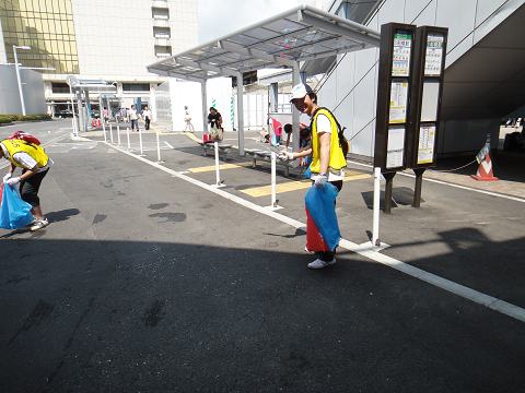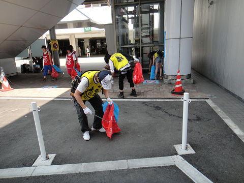 ガンガンに照りつける太陽の下、元気にごみ拾いをしました!