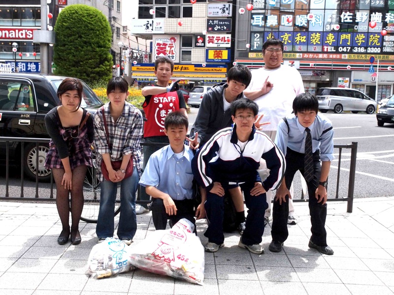 念のため9時半から浦安駅にて、中止連絡が行き届かずに集まってしまった方々への対応の為スタンバイしていたところ、ジャンボさん、長谷川さん、浦安高校生OBの女の子達、浦安高校生マツバラ君、大下君、エンドー君、シゲカワ君が駅に登場。。。
