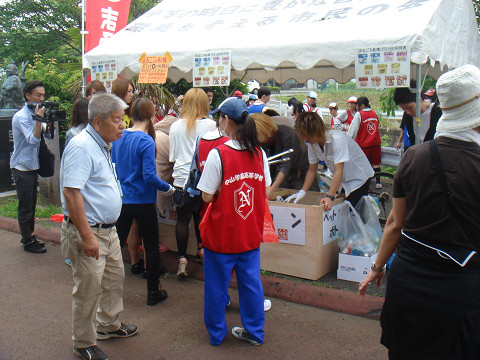 西組班長や、若衆の方々は単身ゴミ拾いで参加した私に対していろいろ気遣って下さいました。名前でも読んで下さりとても嬉しく思いました。え?単身?はい。。。実はそうなんです^^;。まるごみ面子は私と前ぴゃんのみ(前川くんは車の移動もあり参加したのは私だけでありました)。今回は、まるごみJAPANイベントや、毎回参加頂いている浦安高校生弓道部の方々のインターハイが重なってしまったりで人数が集まらなかったのです^^;。