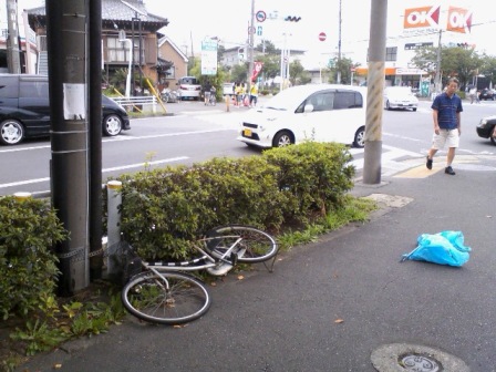 堂々と捨てられた自転車が!!悲しい姿ですね。。
