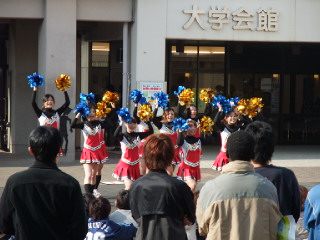 今回は、チアサークルの『Lips』さんと、『モダンジャズ研究会』の2団体のみなさんにパフォーマンスをしていただき、人がわらわら~ってしてきたところでまるごみ告知&ビラ配りという形でした★